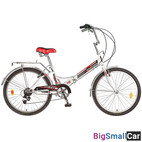 Велосипед NOVATRACK 24" белый, складной, красный, FS, 6-скор. Power RD42 B, торм 2р, сидение #137235